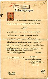 Bild 01: Geburtszeugnis. Wien 1907 / Quelle: AGSOe, Nachlass Marie Jahoda, Signatur 41/7.1.1, pag. 1. / ©