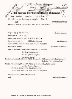 Bild 03: Urteil gegen Marie Jahoda. Wien, am 2. Juli 1937 / Quelle: Wiener Stadt- und Landesarchiv, Wien, Landesgericht für Strafsachen Wien, Vr 10981/36.