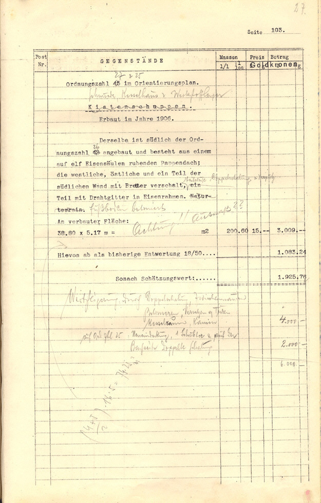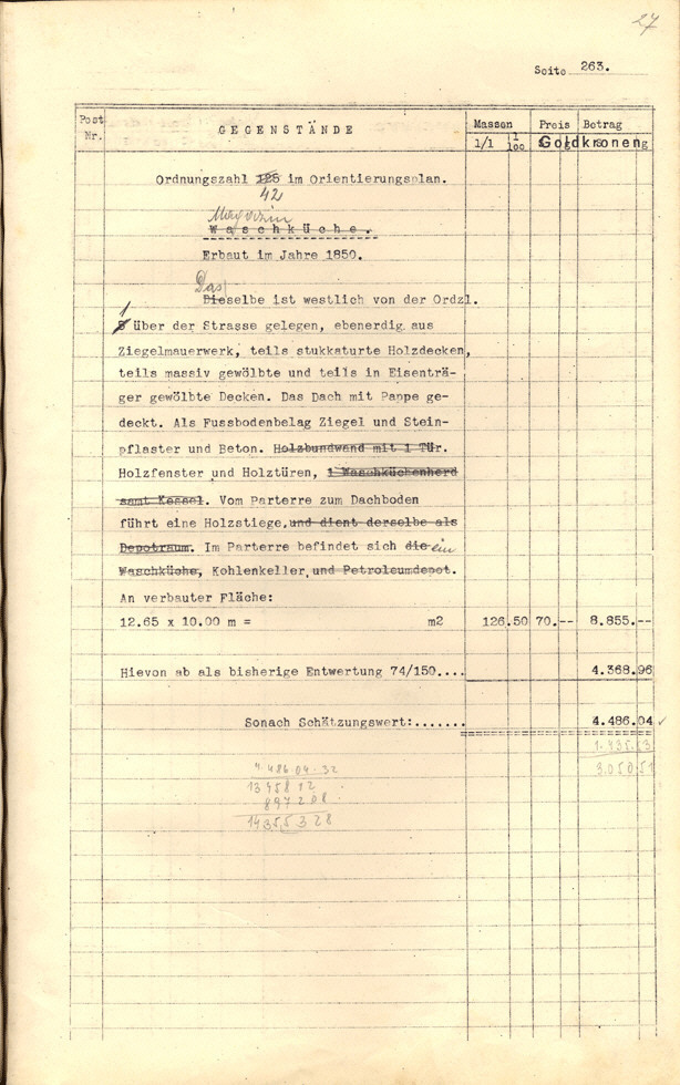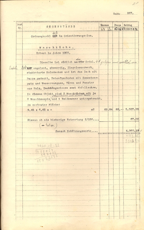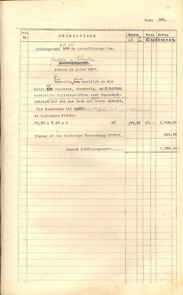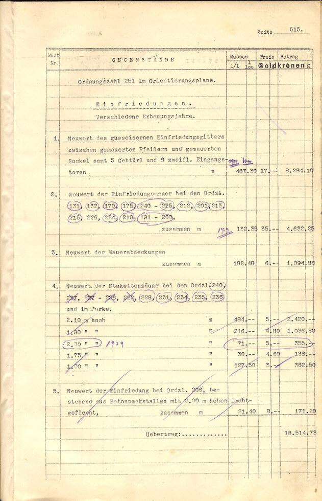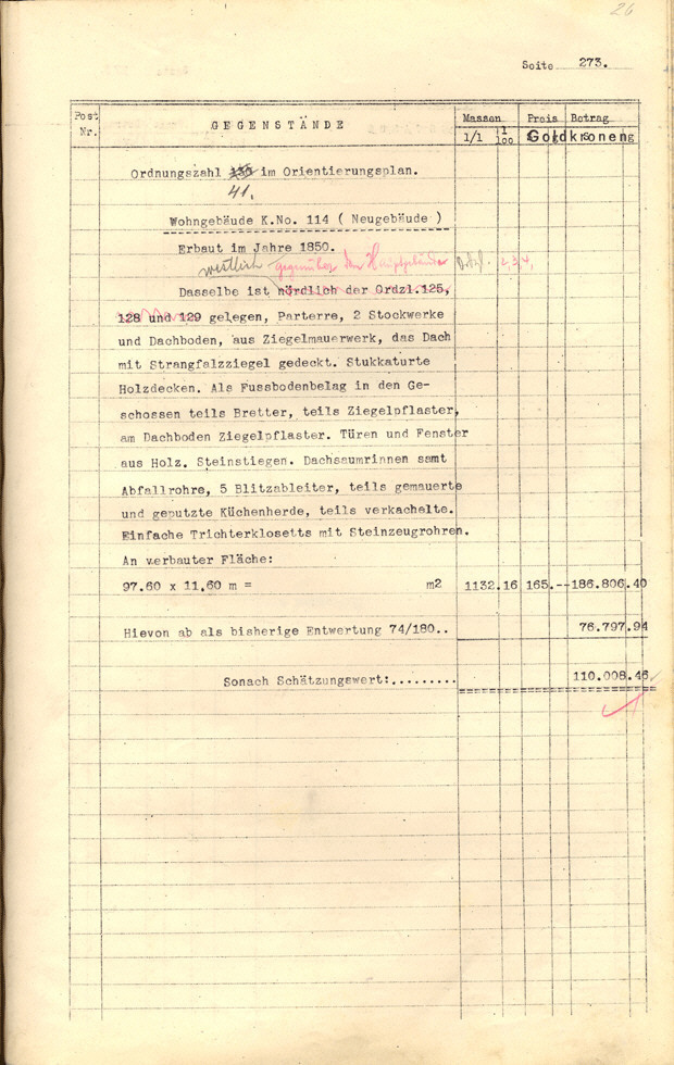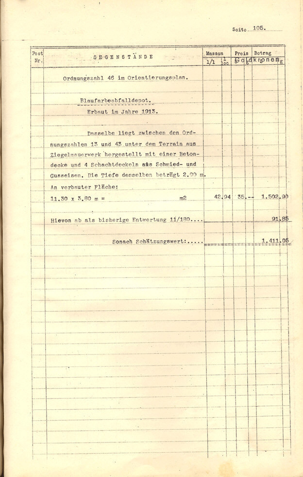 Seite 105). Die Korrekturen mit Bleistift betreffen die baulichen