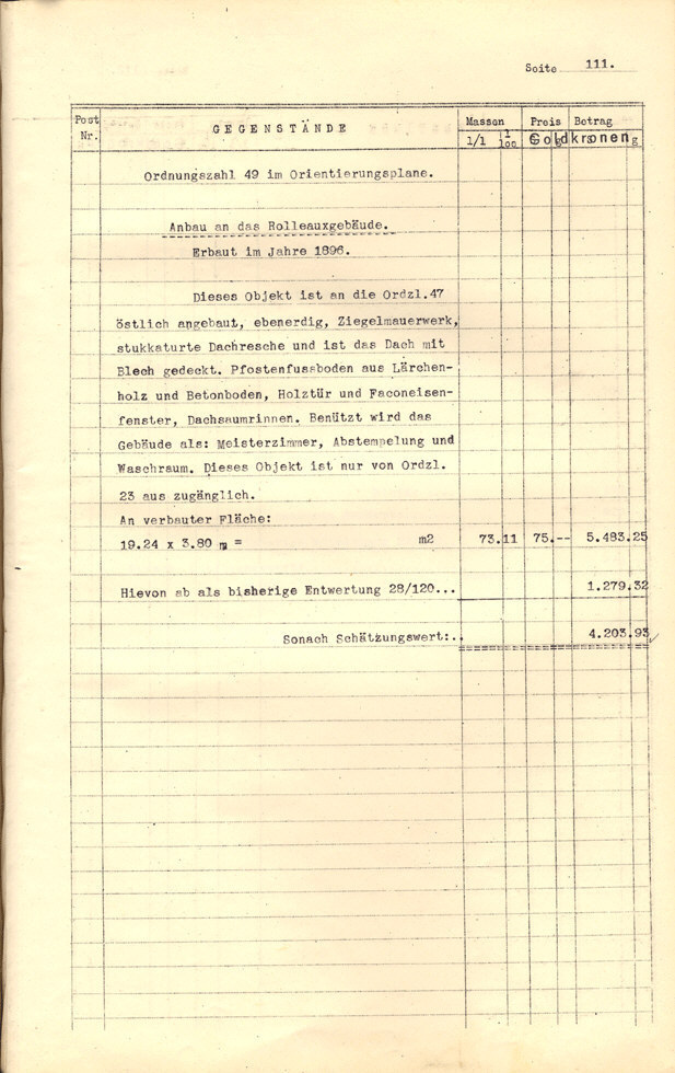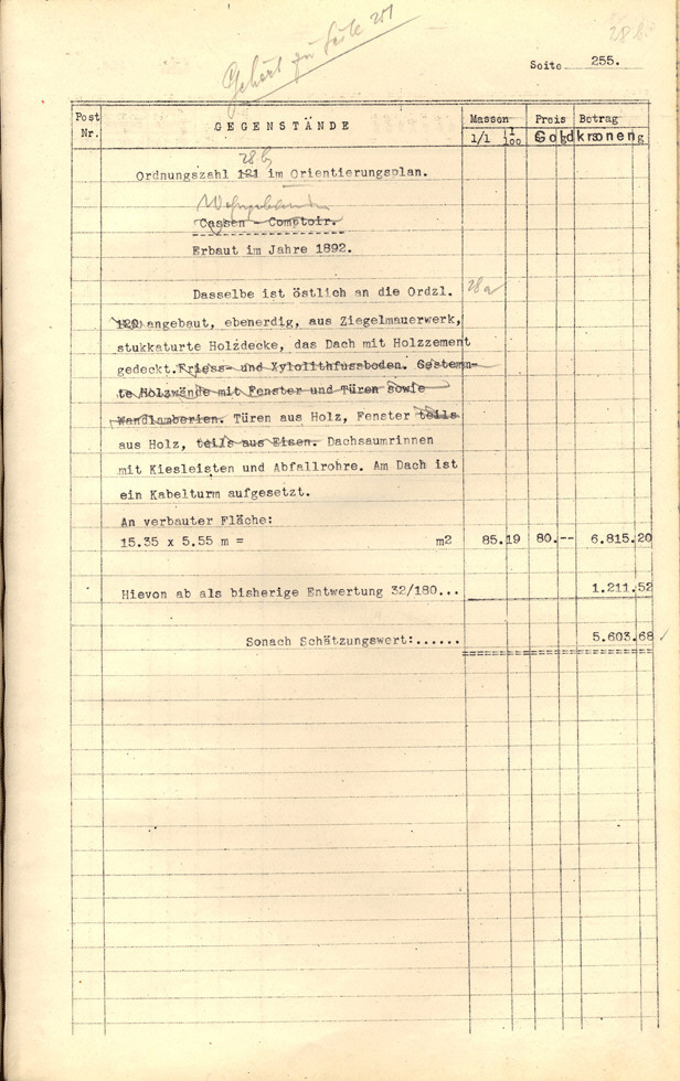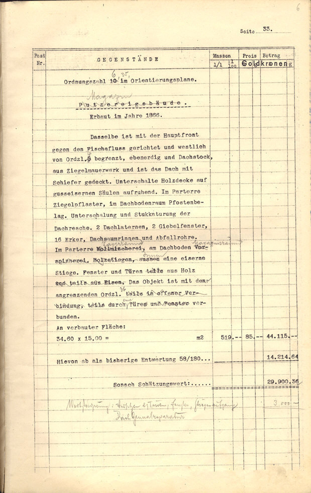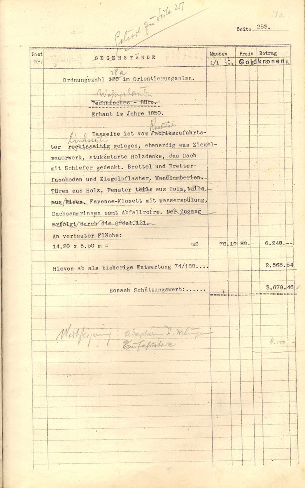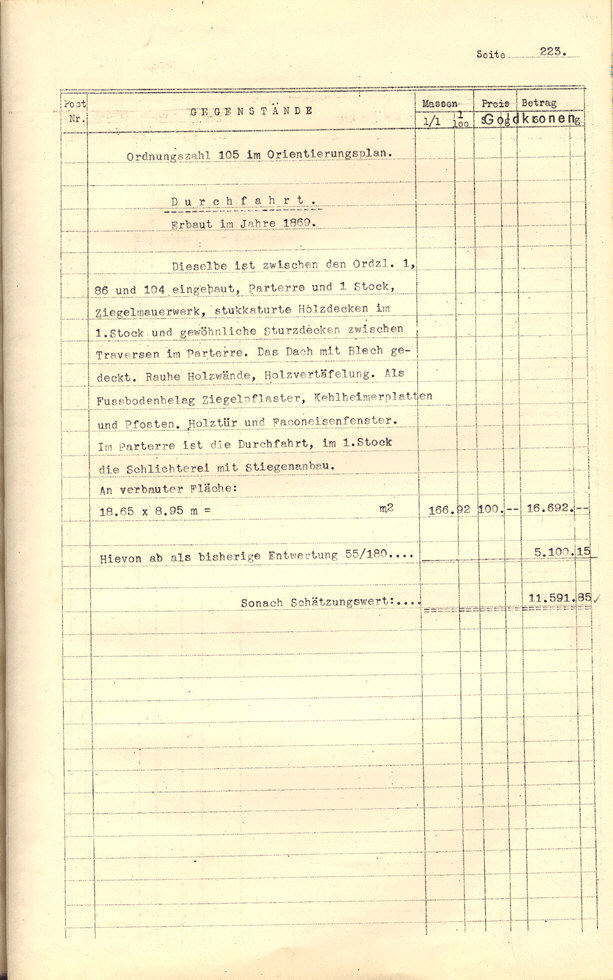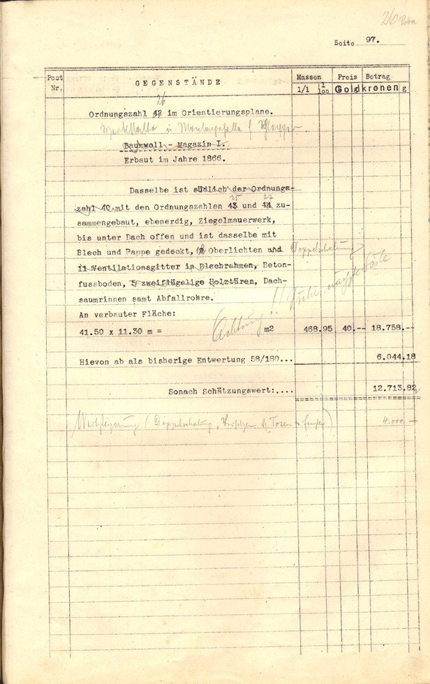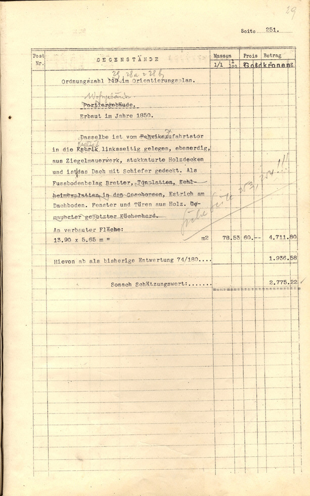 Seite 105). Die Korrekturen mit Bleistift betreffen die baulichen