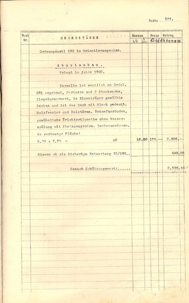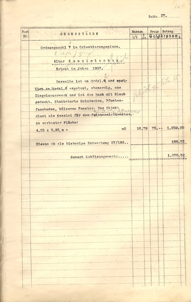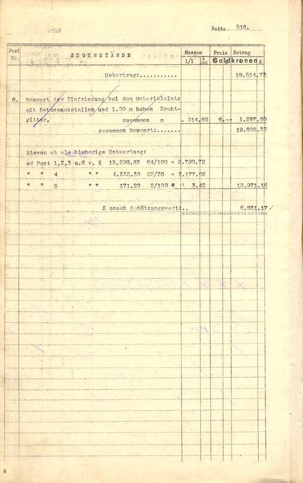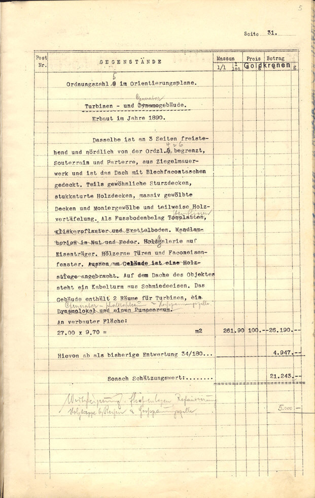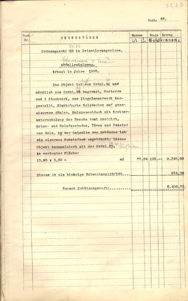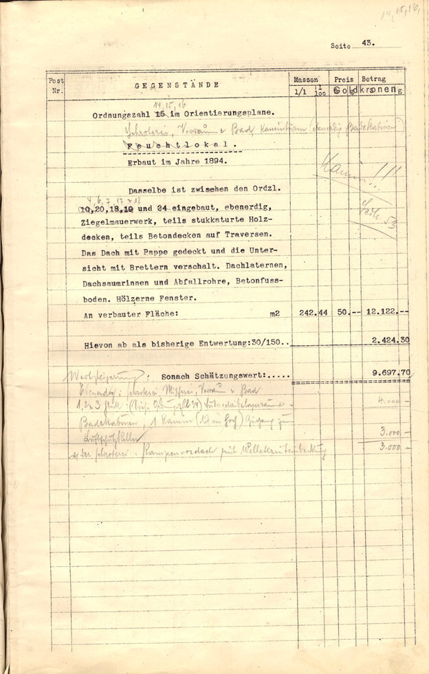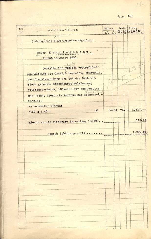 Seite 105). Die Korrekturen mit Bleistift betreffen die baulichen