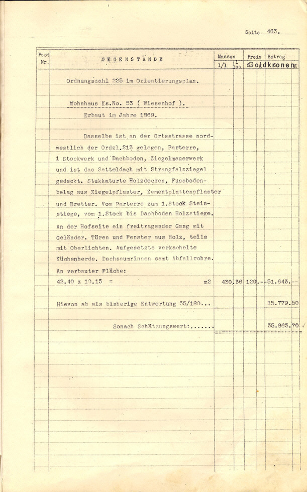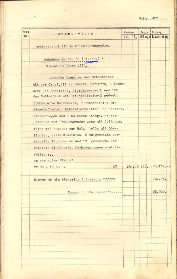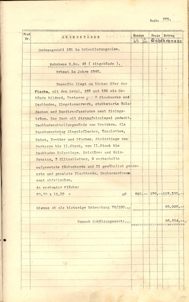 dabei um eine genaue Beschreibung aller Gebäude und Gebäudeteile der