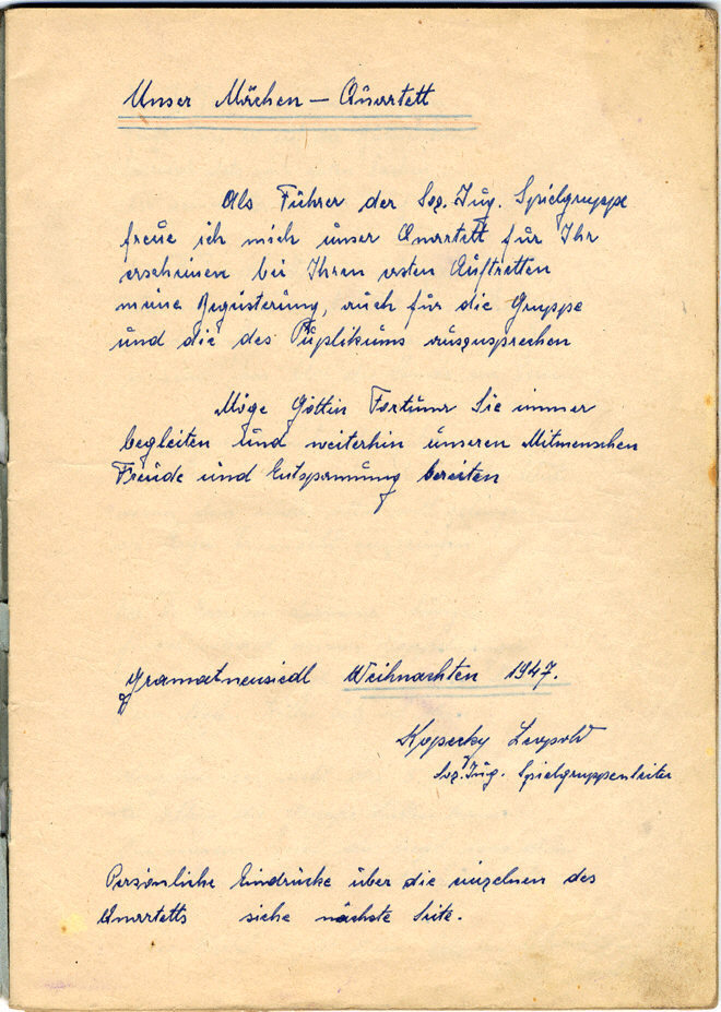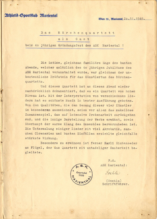 Chor besteht. Das Märchen-Quartett wurde 1947 gegründet und war bis 1951