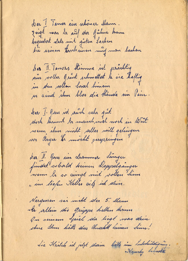 aktiv. Mitglieder waren Oskar Solar (Leiter und Erster Tenor), Hans Leiker (Zweiter Tenor),