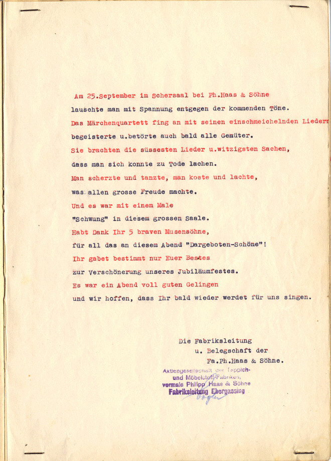 vormals Philipp Haas & Söhne / Fabriksleitung Ebergassing«, S. [29]