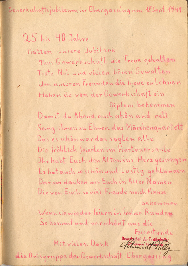 für Wien und Niederösterreich«, S. [43] »Gewerkschaft der Textilarbeiter / Ortsgruppe Ebergassing«.