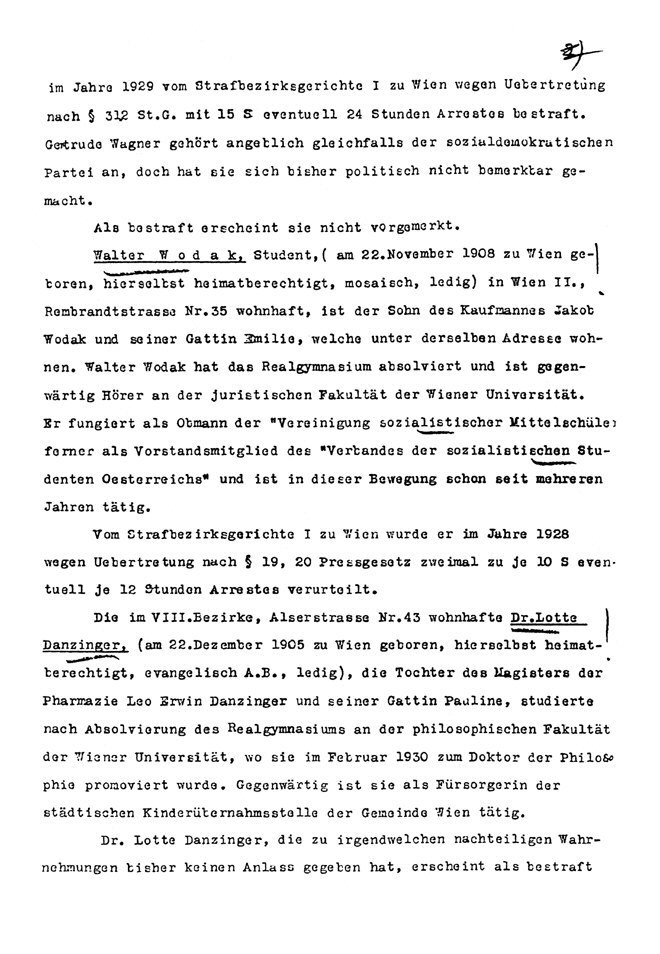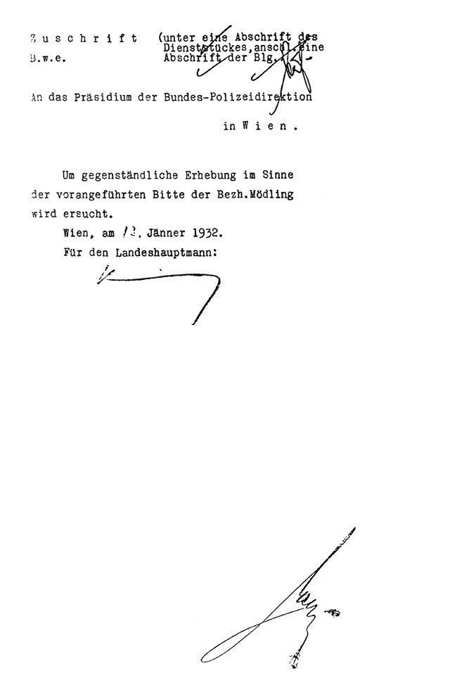 die Bundes-Polizeidirektion in Wien. Wien, am 13. Januar 1932; 2 Bl.,