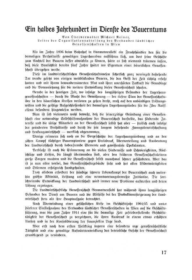 halbes Jahrhundert im Dienste des Bauerntums: