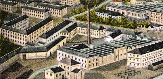 Der Bleiche- und Appreturkomplex von Südwesten gesehen.