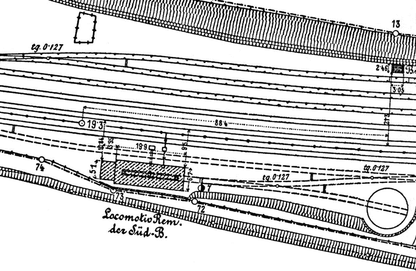 Grundriss der Remise des Bahnhofs Gramatneusiedl.