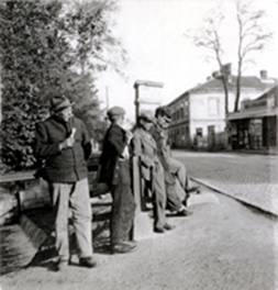 Marienthal factory workers at the Feilbach bridge, Hauptstraße.