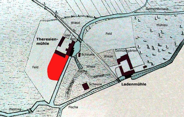 Von Reinhard Müller bearbeiteter Ausschnitt aus dem Franziszeischen Kataster 1820.
