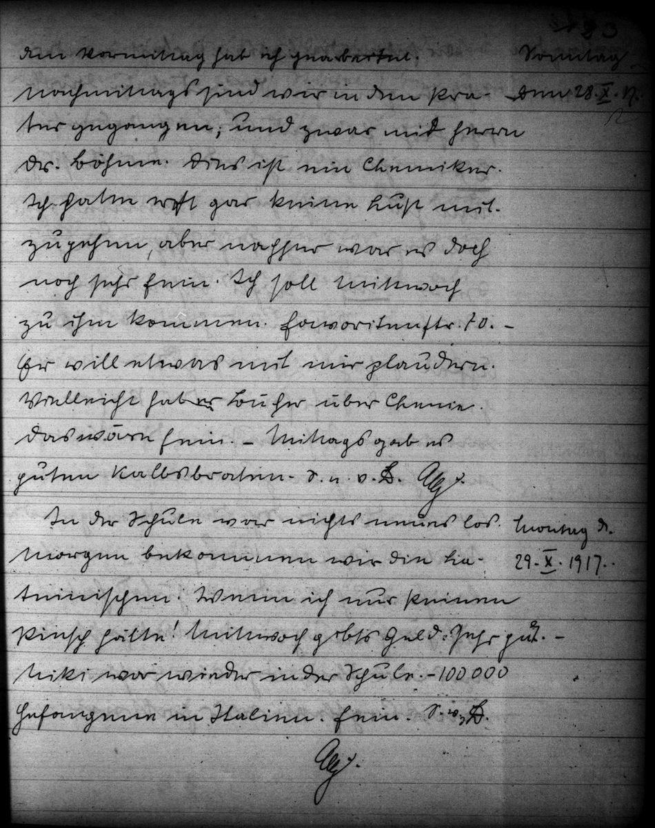 Oskar Morgenstern Tagebuchedition: Tagebuch 1917-19, Eintrag 1917-10-29