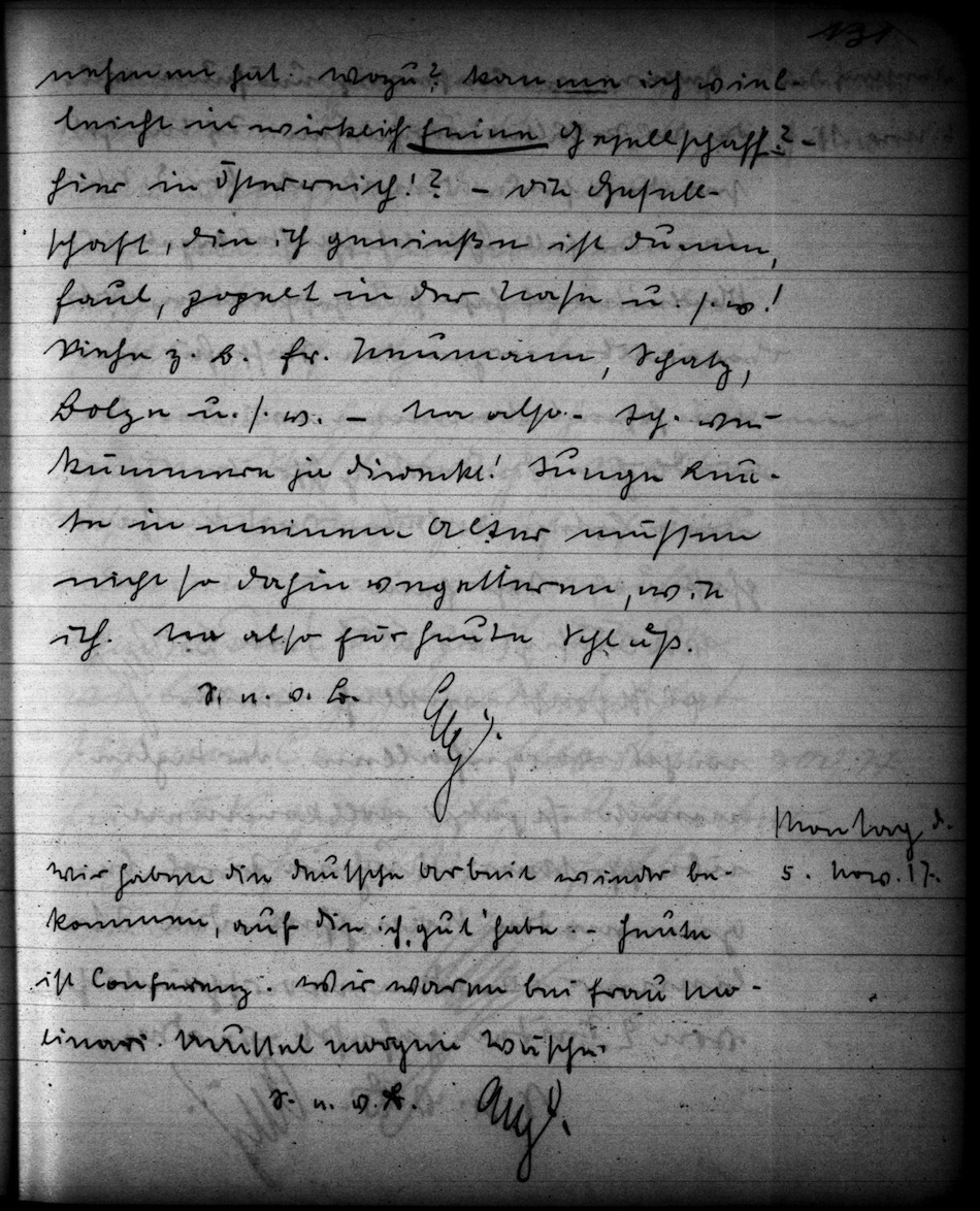 Oskar Morgenstern Tagebuchedition: Tagebuch 1917-19, Eintrag 1917-11-05