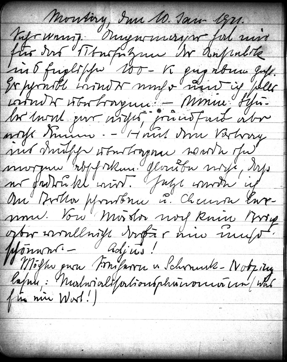 Oskar Morgenstern Tagebuchedition: Tagebuch 1921-21a, Eintrag 1921-01-10