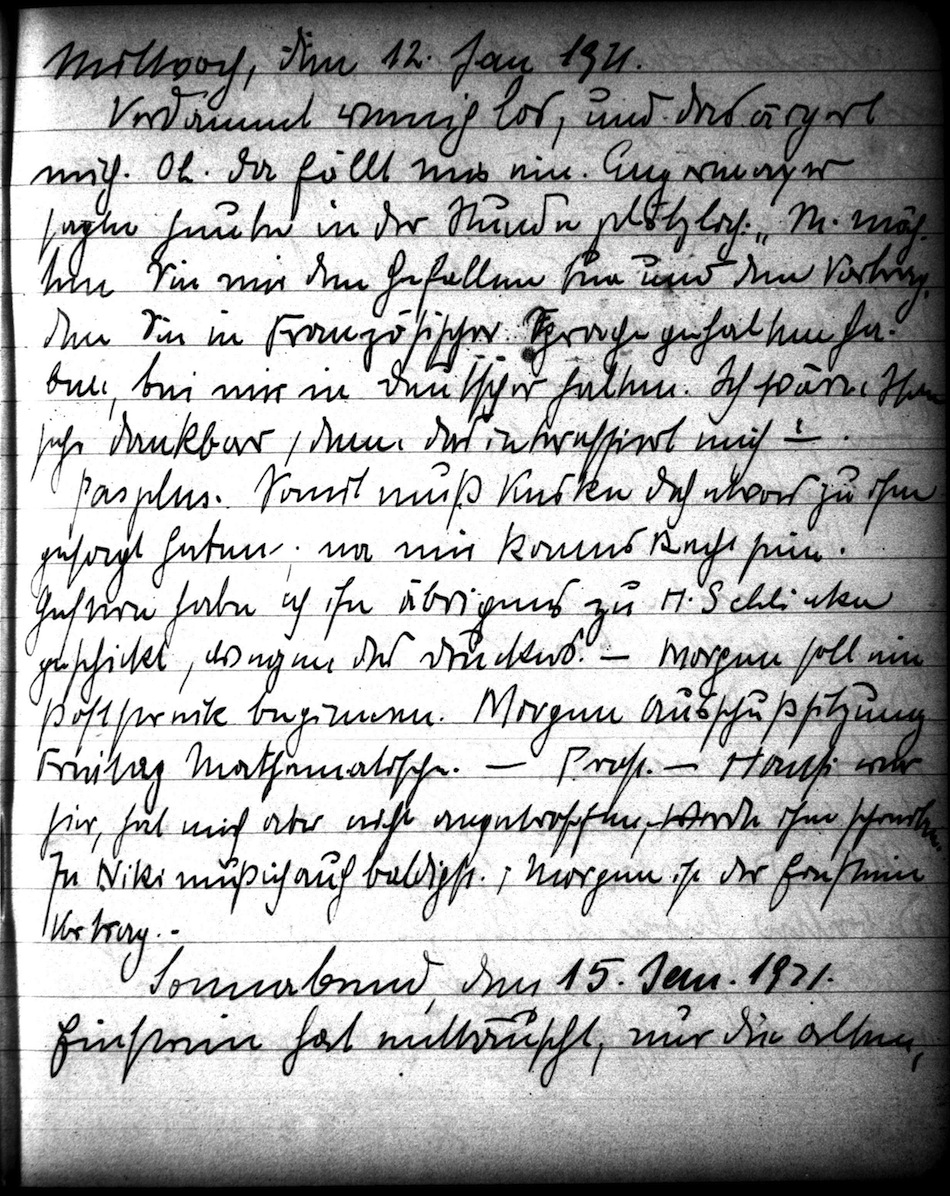 Oskar Morgenstern Tagebuchedition: Tagebuch 1921-21a, Eintrag 1921-01-15