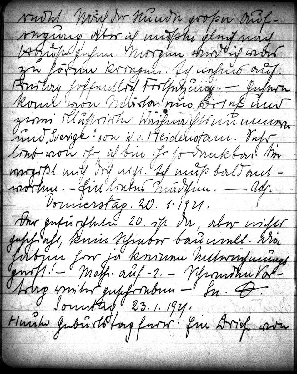 Oskar Morgenstern Tagebuchedition: Tagebuch 1921-21a, Eintrag 1921-01-19