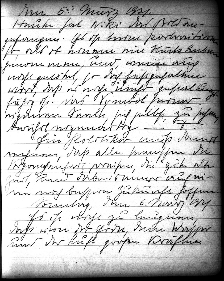 Oskar Morgenstern Tagebuchedition: Tagebuch 1921-21a, Eintrag 1921-03-05
