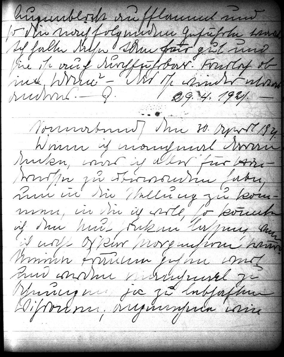 Oskar Morgenstern Tagebuchedition: Tagebuch 1921-21a, Eintrag 1921-04-30