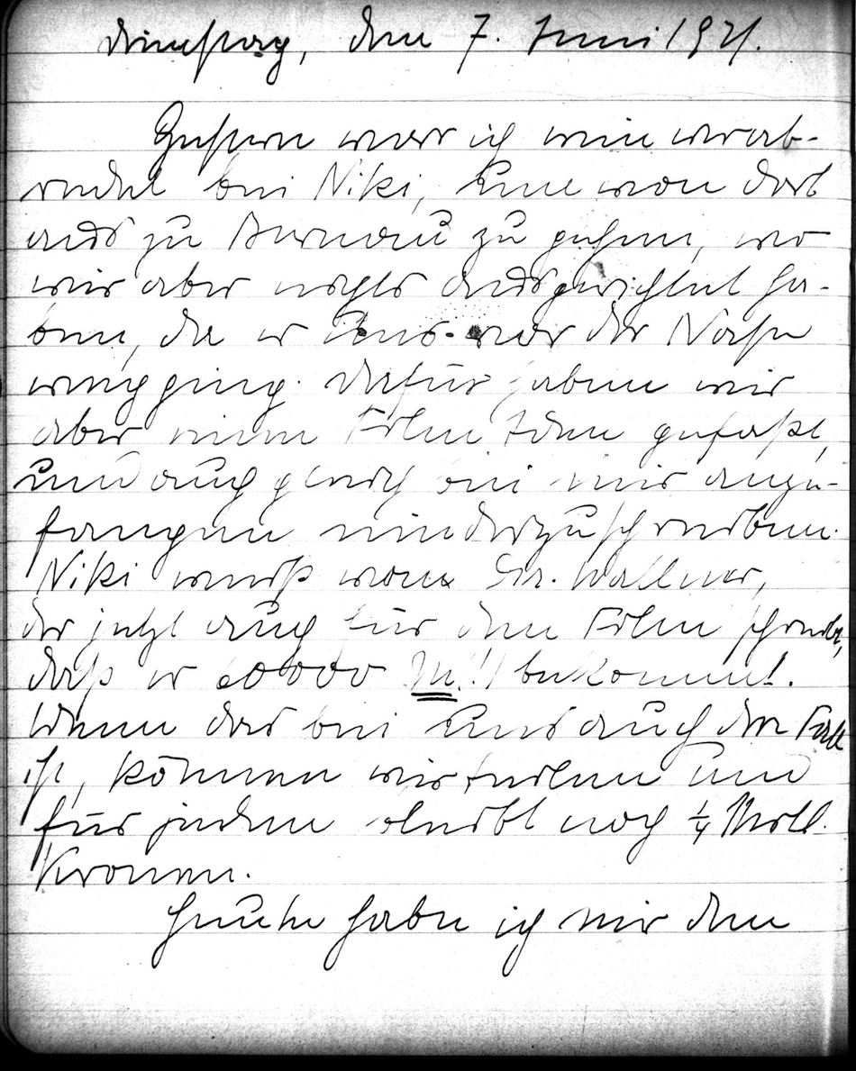 Oskar Morgenstern Tagebuchedition: Tagebuch 1921-21a, Eintrag 1921-06-07