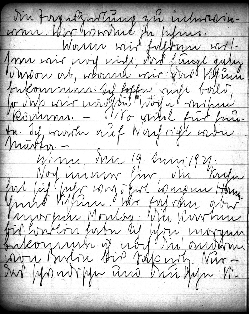 Oskar Morgenstern Tagebuchedition: Tagebuch 1921-21b, Eintrag 1921-06-19