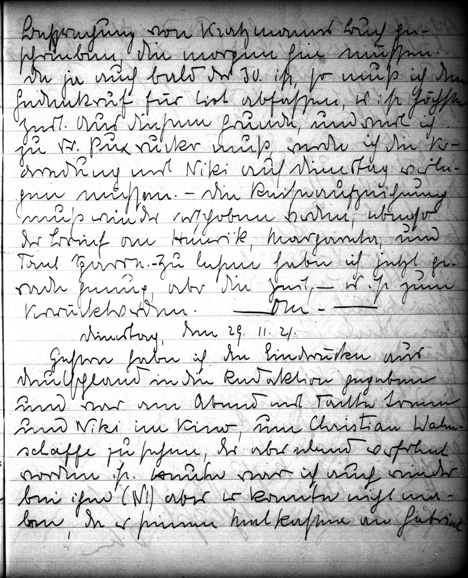 Oskar Morgenstern Tagebuchedition: Tagebuch 1921-22, Eintrag 1921-11-29
