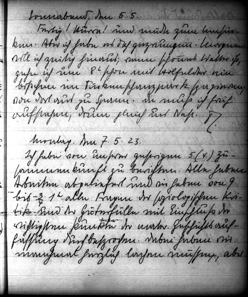 Oskar Morgenstern Tagebuchedition: Tagebuch 1923-23, Eintrag 1923-05-07