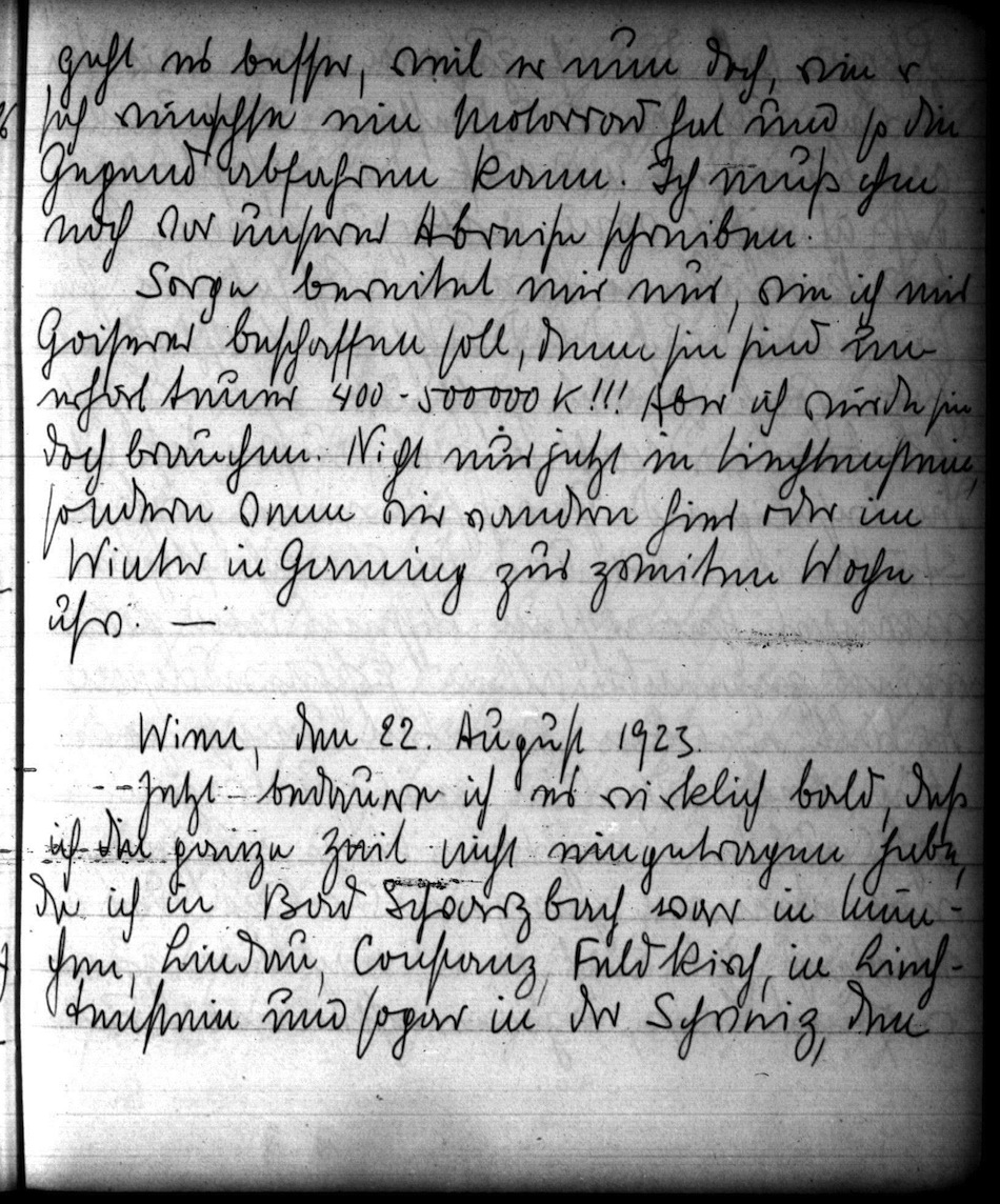 Oskar Morgenstern Tagebuchedition: Tagebuch 1923-23, Eintrag 1923-08-22