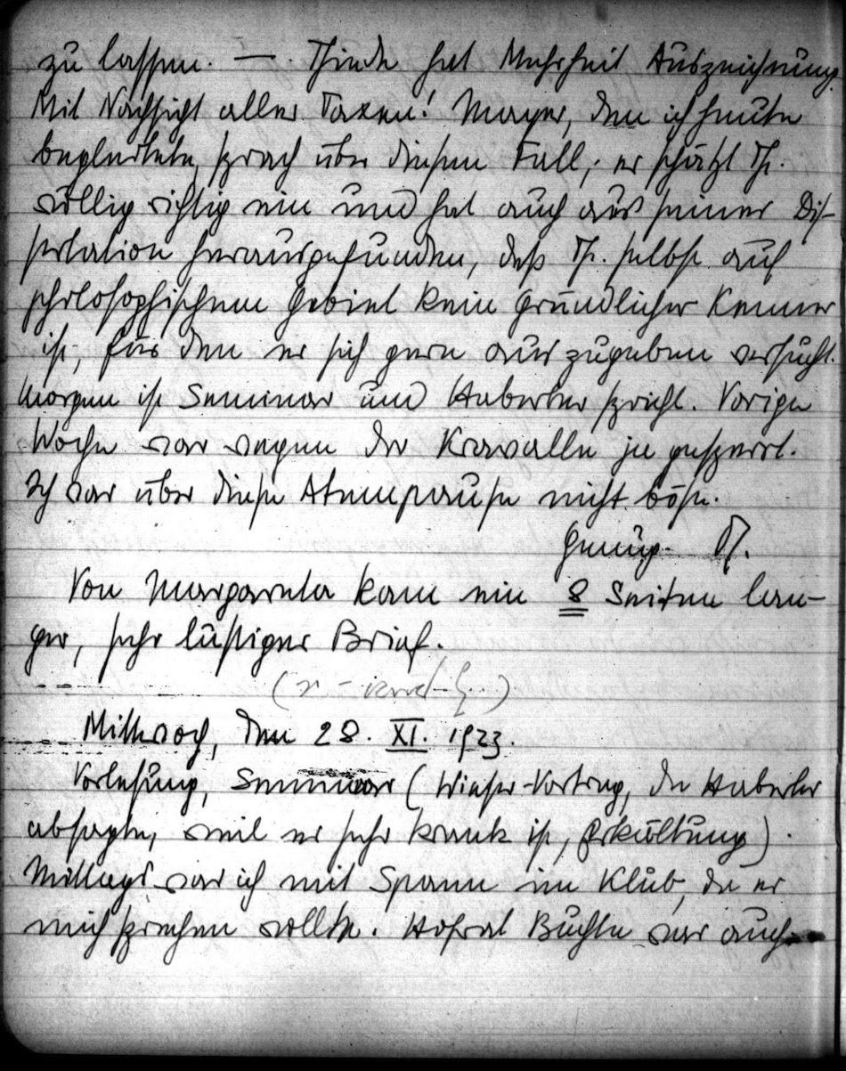 Oskar Morgenstern Tagebuchedition: Tagebuch 1923-24, Eintrag 1923-11-27