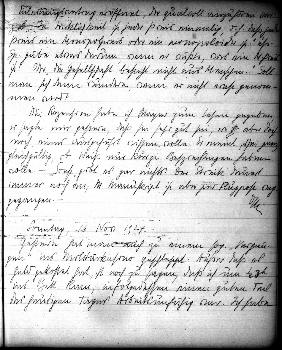 Oskar Morgenstern Tagebuchedition: Tagebuch 1924-25, Eintrag 1924-11-16