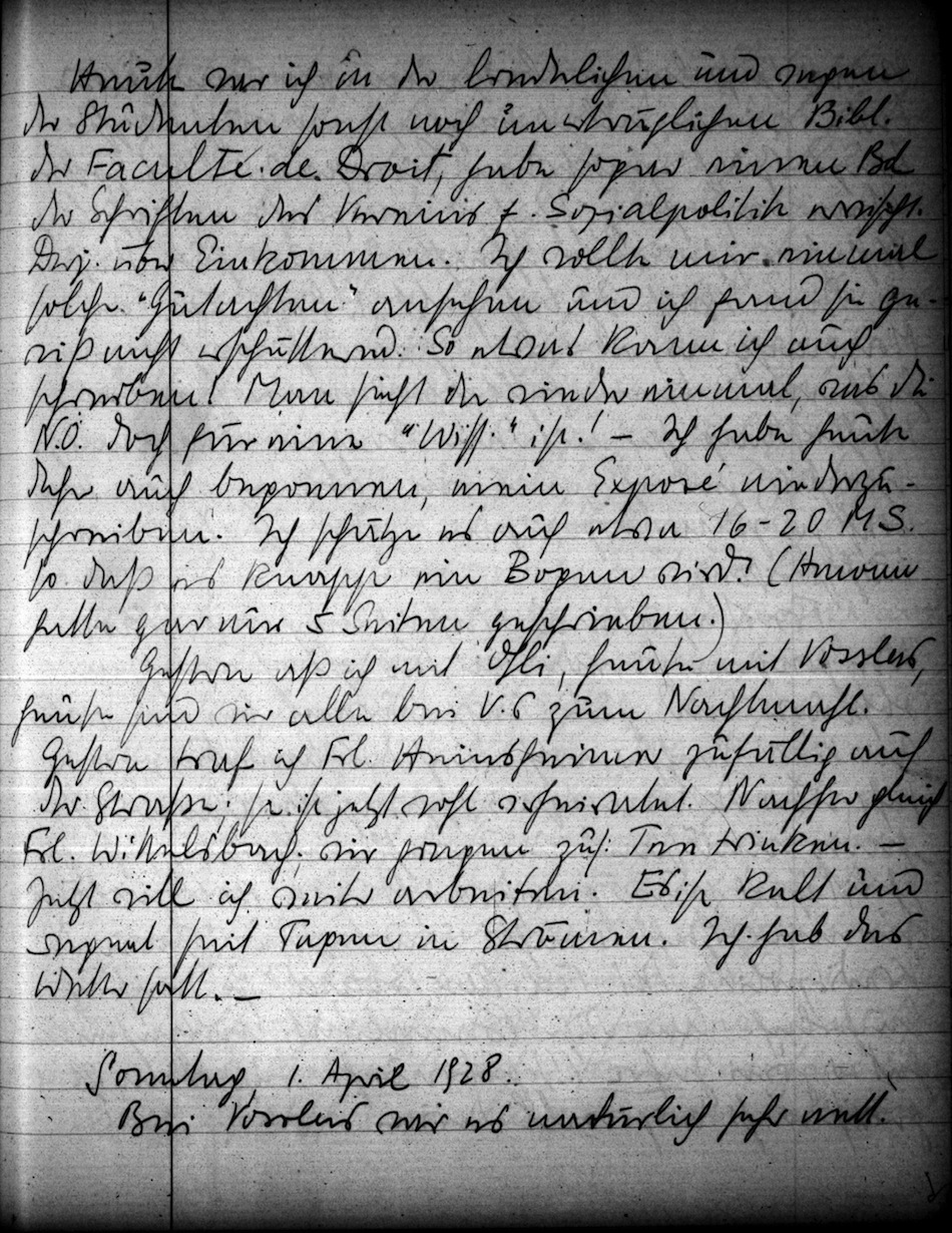 Oskar Morgenstern Tagebuchedition: Tagebuch 1928-28, Eintrag 1928-04-01