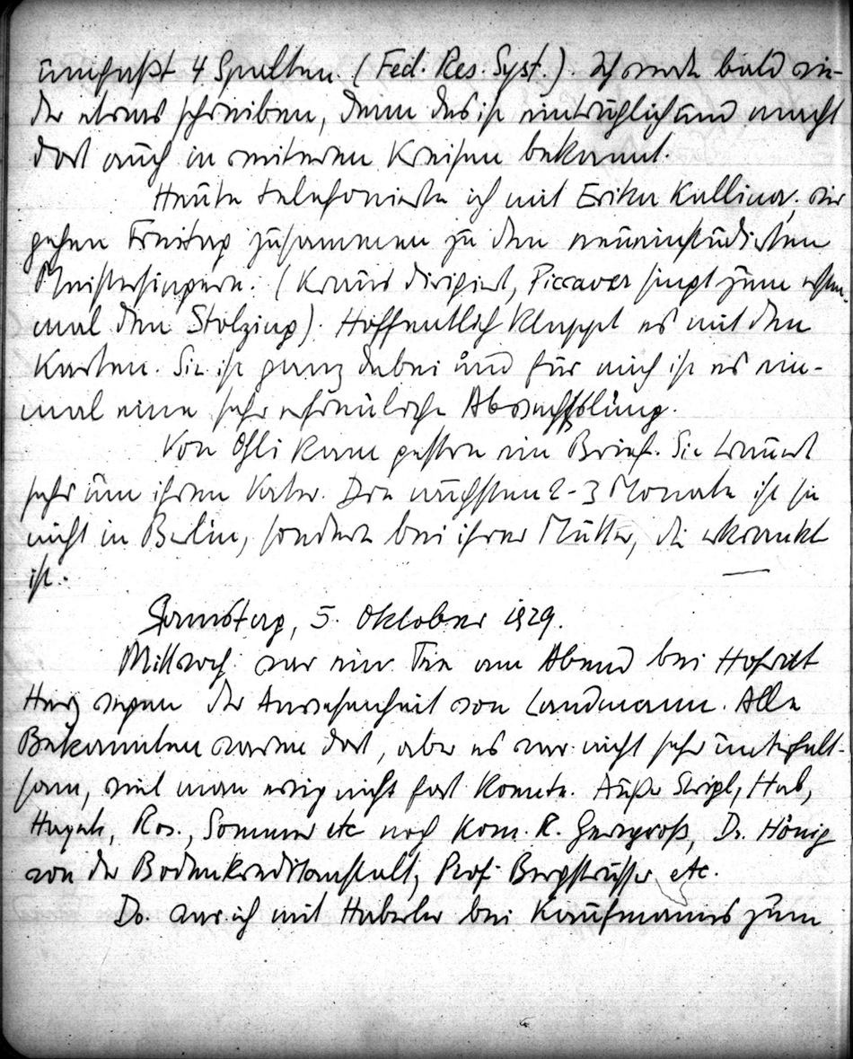 Oskar Morgenstern Tagebuchedition: Tagebuch 1928-29, Eintrag 1929-10-05