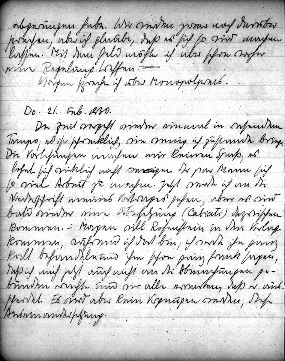 Oskar Morgenstern Tagebuchedition: Tagebuch 1930-30, Eintrag 1930-02-21
