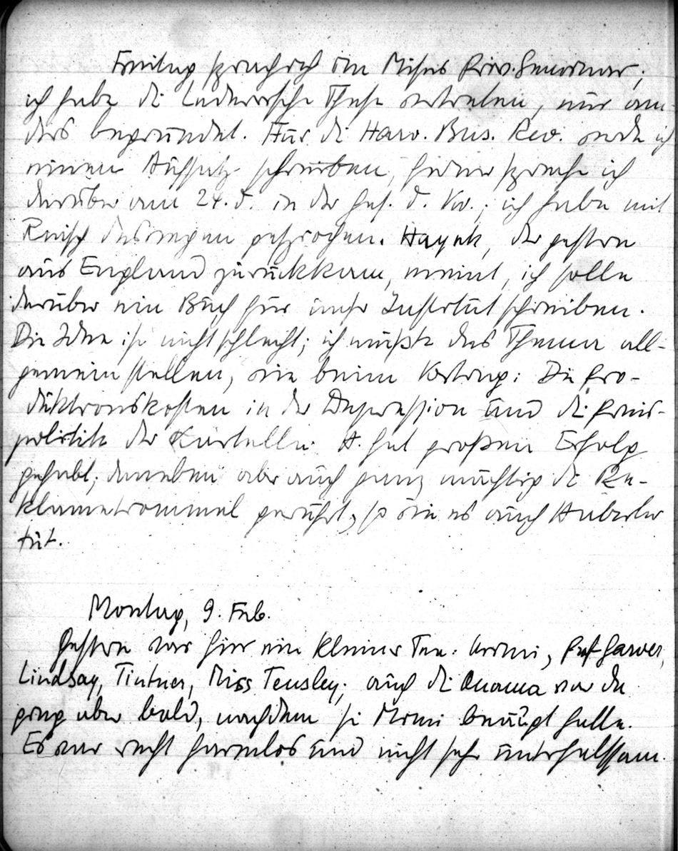 Oskar Morgenstern Tagebuchedition: Tagebuch 1930-31, Eintrag 1931-02-09