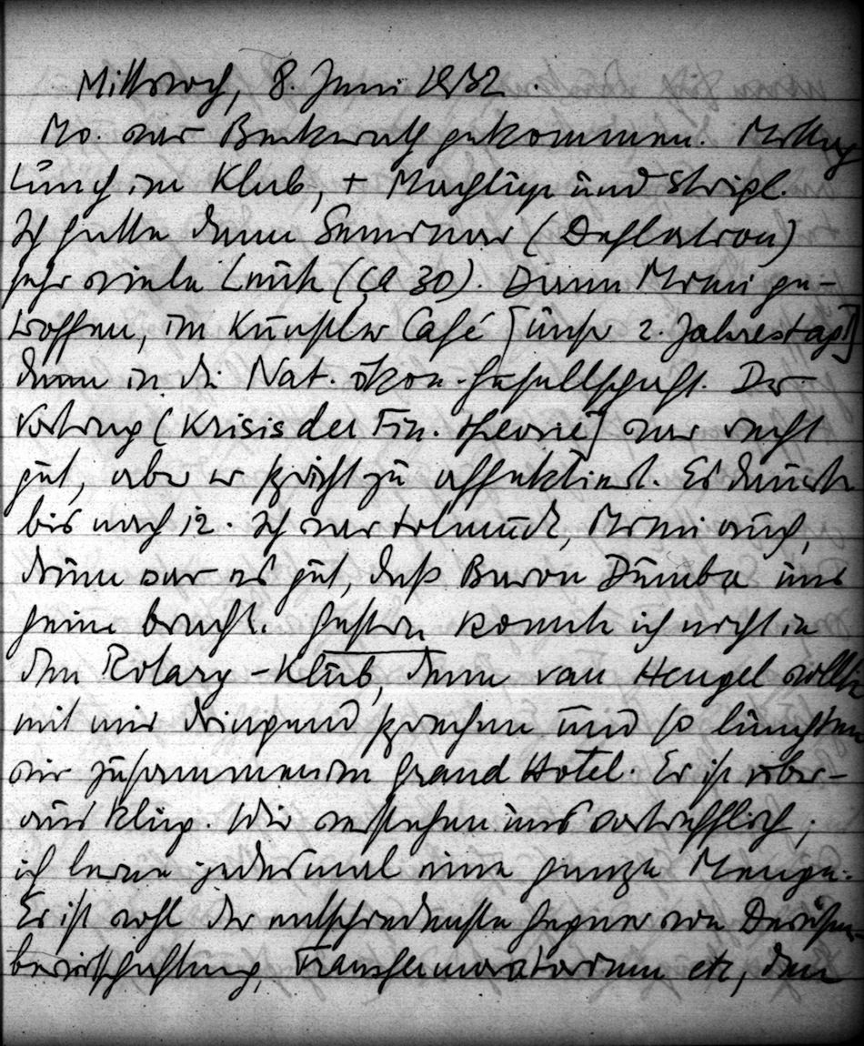 Oskar Morgenstern Tagebuchedition: Tagebuch 1931-33, Eintrag 1932-06-08