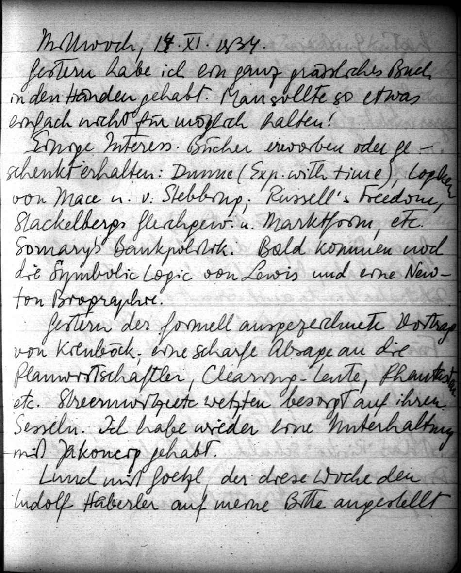 Oskar Morgenstern Tagebuchedition: Tagebuch 1933-35, Eintrag 1934-11-14