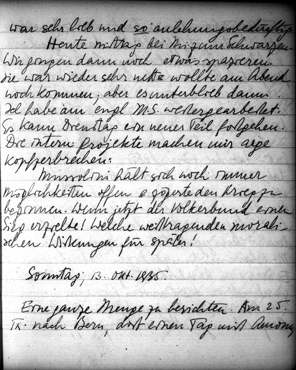 Oskar Morgenstern Tagebuchedition: Tagebuch 1933-35, Eintrag 1935-10-13