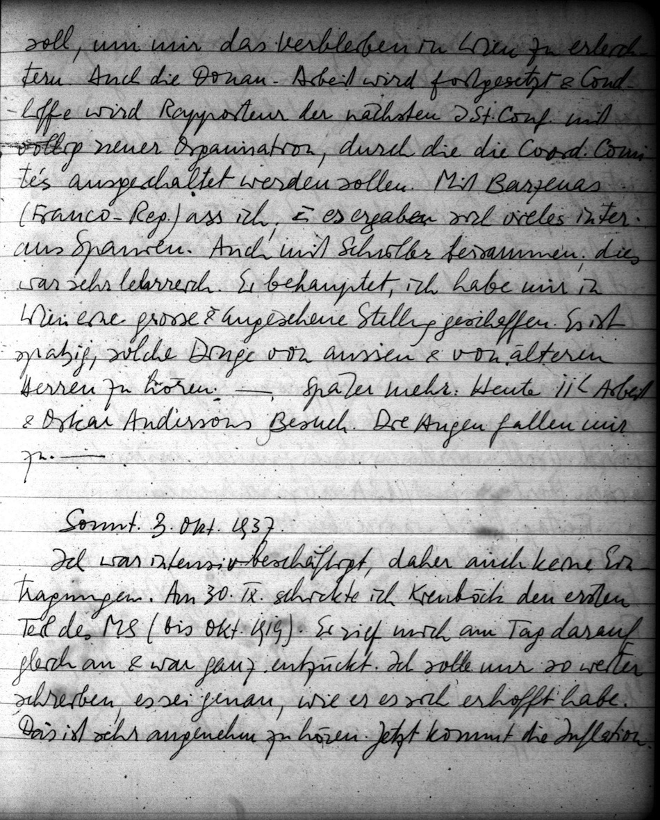 Oskar Morgenstern Tagebuchedition: Tagebuch 1935-38, Eintrag 1937-10-03