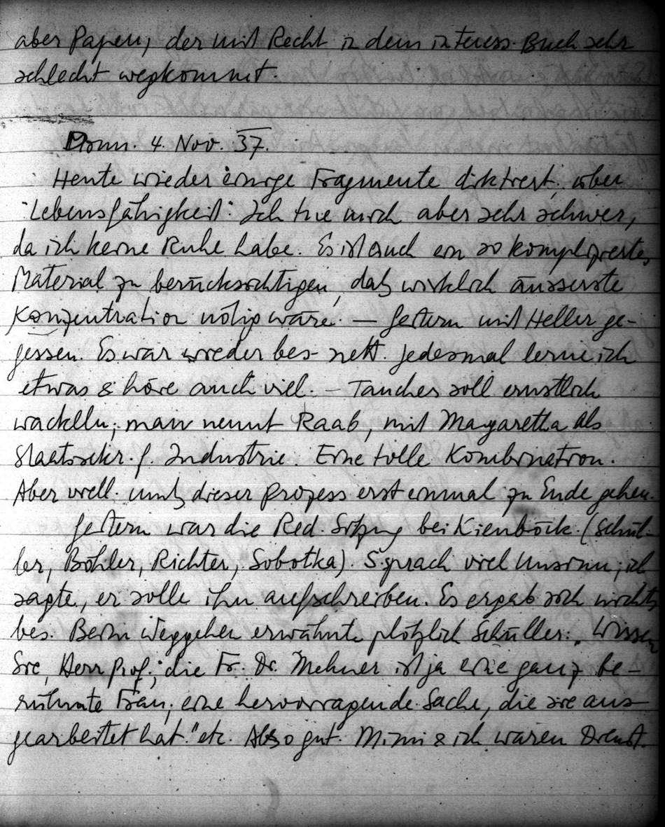 Oskar Morgenstern Tagebuchedition: Tagebuch 1935-38, Eintrag 1937-11-04