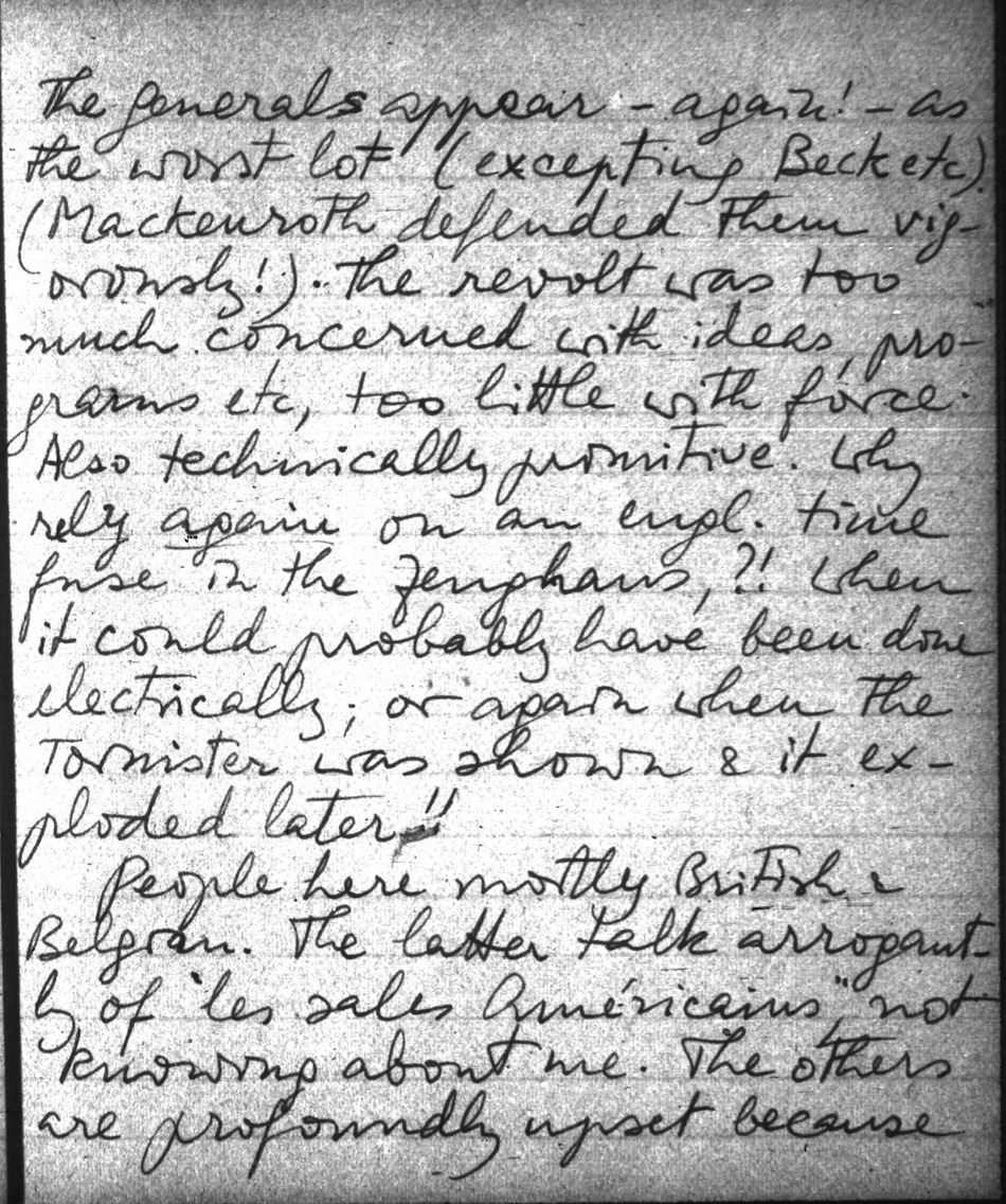 I left Copenh. Tuesday 19. Th; the plane returned after a few min., only one engine working! The weather was fine & we saw all of C. & over to Sweden etc. In Frankfurt a short stop, at 3h in Zürich, then to Basel (Hotel Euler). There was mail, but nothing exiting. Nothing from Vienna (!), Mimi, Johnny, Gödel.
