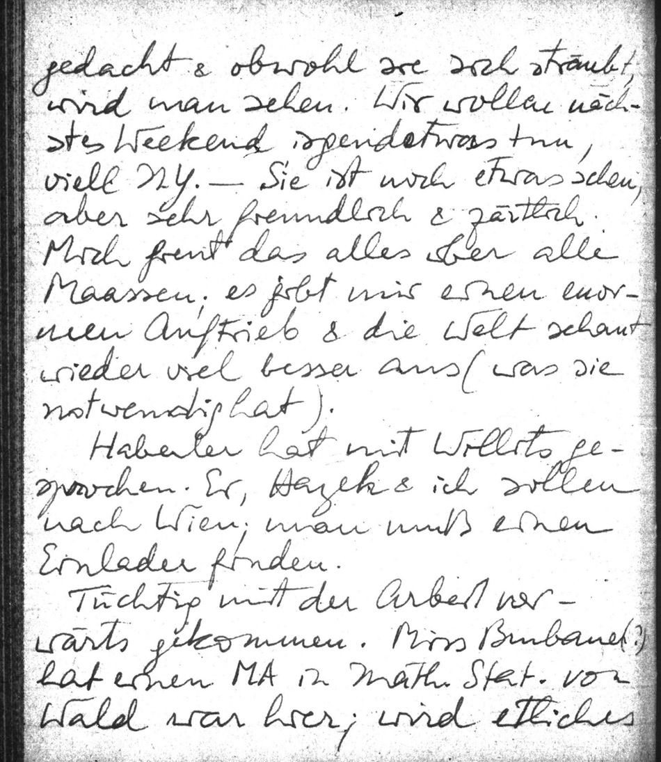 Haberler hat mit Willits gesprochen. Er, Hayek & ich sollen nach Wien; man muß einen Einlader finden.