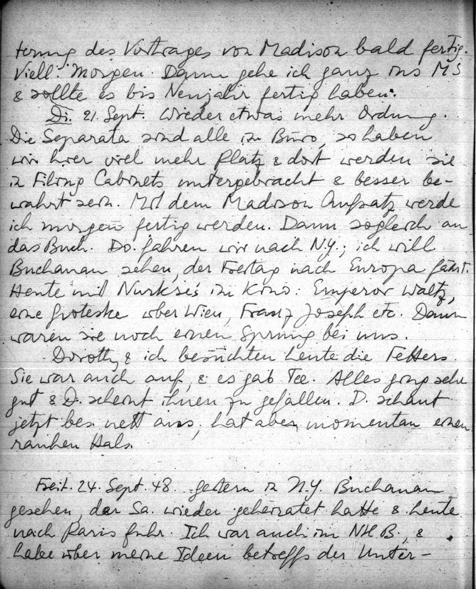Oskar Morgenstern Tagebuchedition: Tagebuch 1948-49, Eintrag 1948-09-24