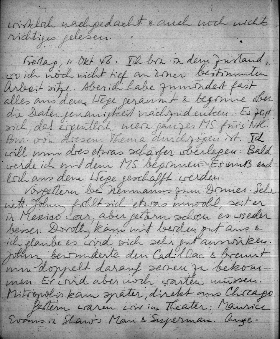 Oskar Morgenstern Tagebuchedition: Tagebuch 1948-49, Eintrag 1948-09-28