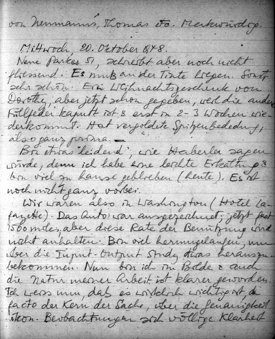 Oskar Morgenstern Tagebuchedition: Tagebuch 1948-49, Eintrag 1948-10-20