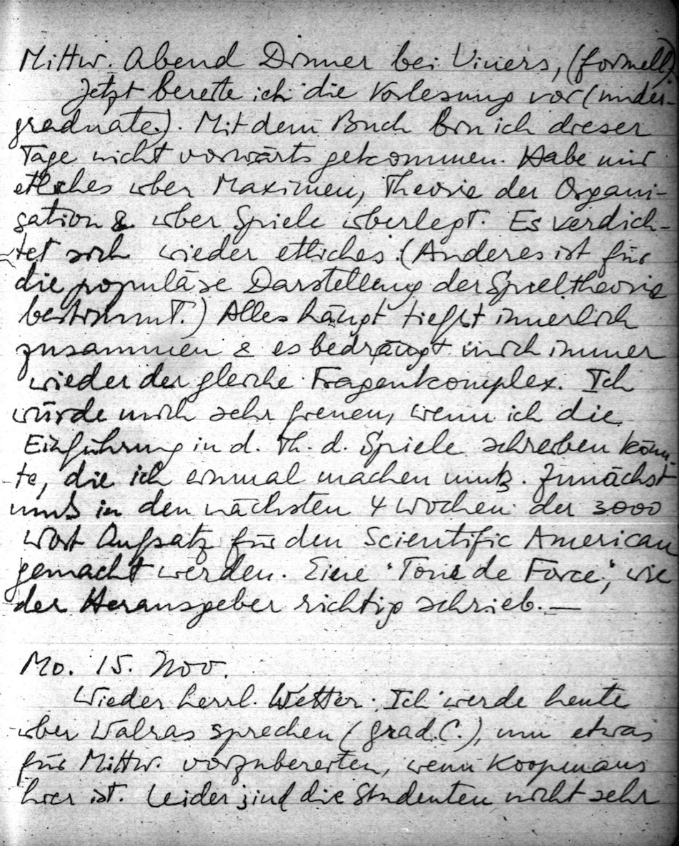 Oskar Morgenstern Tagebuchedition: Tagebuch 1948-49, Eintrag 1948-11-14