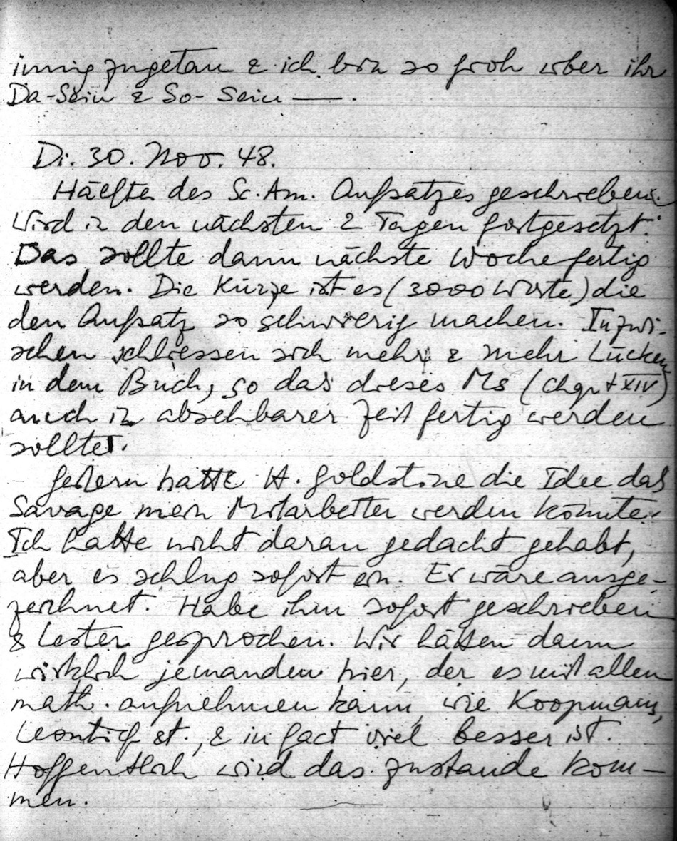 Oskar Morgenstern Tagebuchedition: Tagebuch 1948-49, Eintrag 1948-11-26