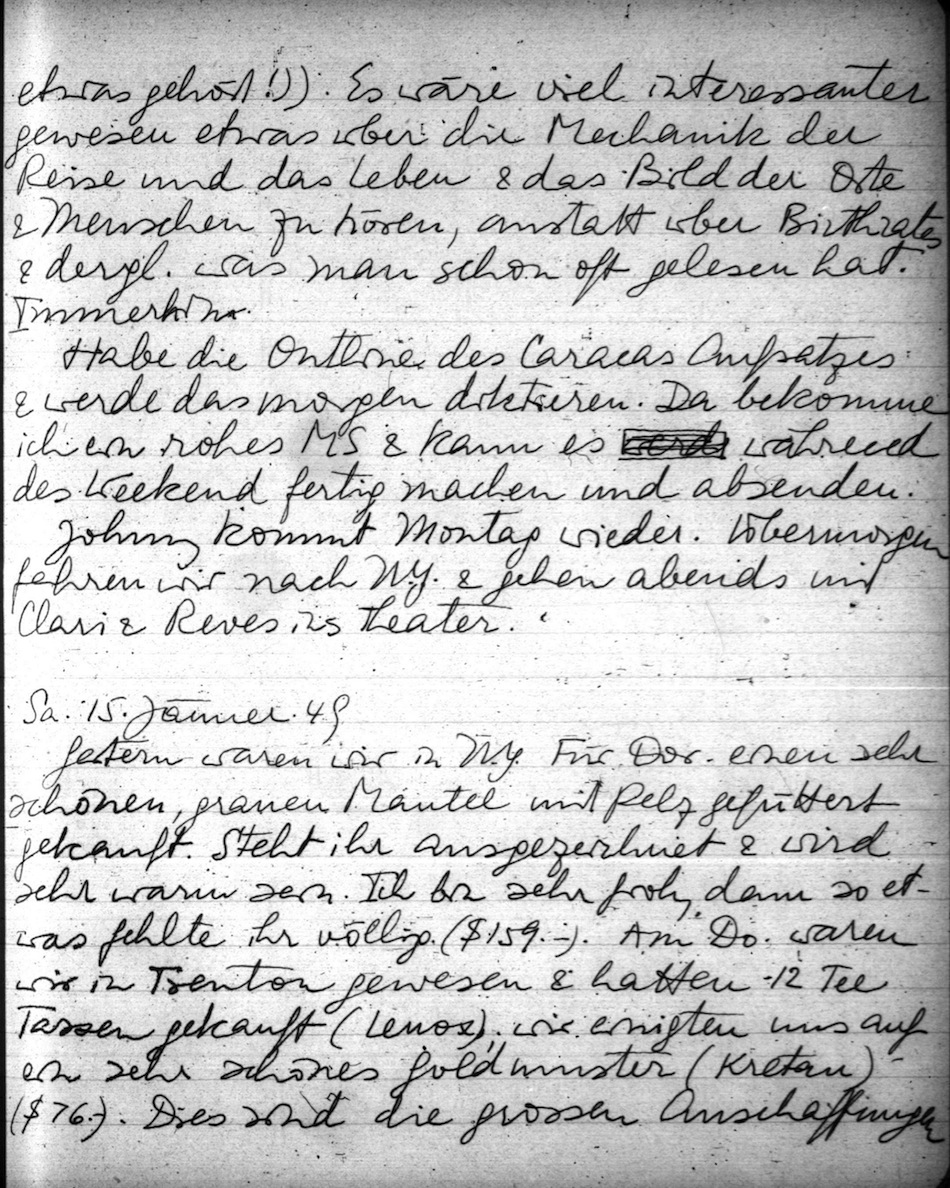 Oskar Morgenstern Tagebuchedition: Tagebuch 1948-49, Eintrag 1949-01-15