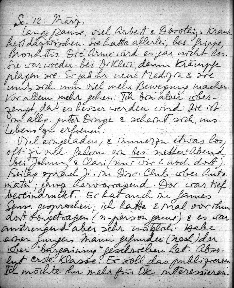 Oskar Morgenstern Tagebuchedition: Tagebuch 1948-49, Eintrag 1949-03-12