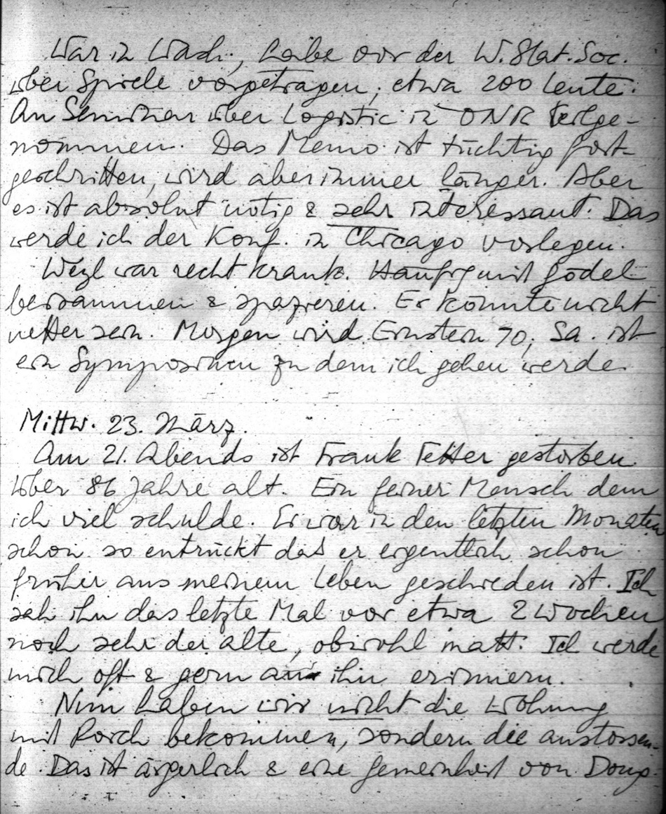 Oskar Morgenstern Tagebuchedition: Tagebuch 1948-49, Eintrag 1949-03-23