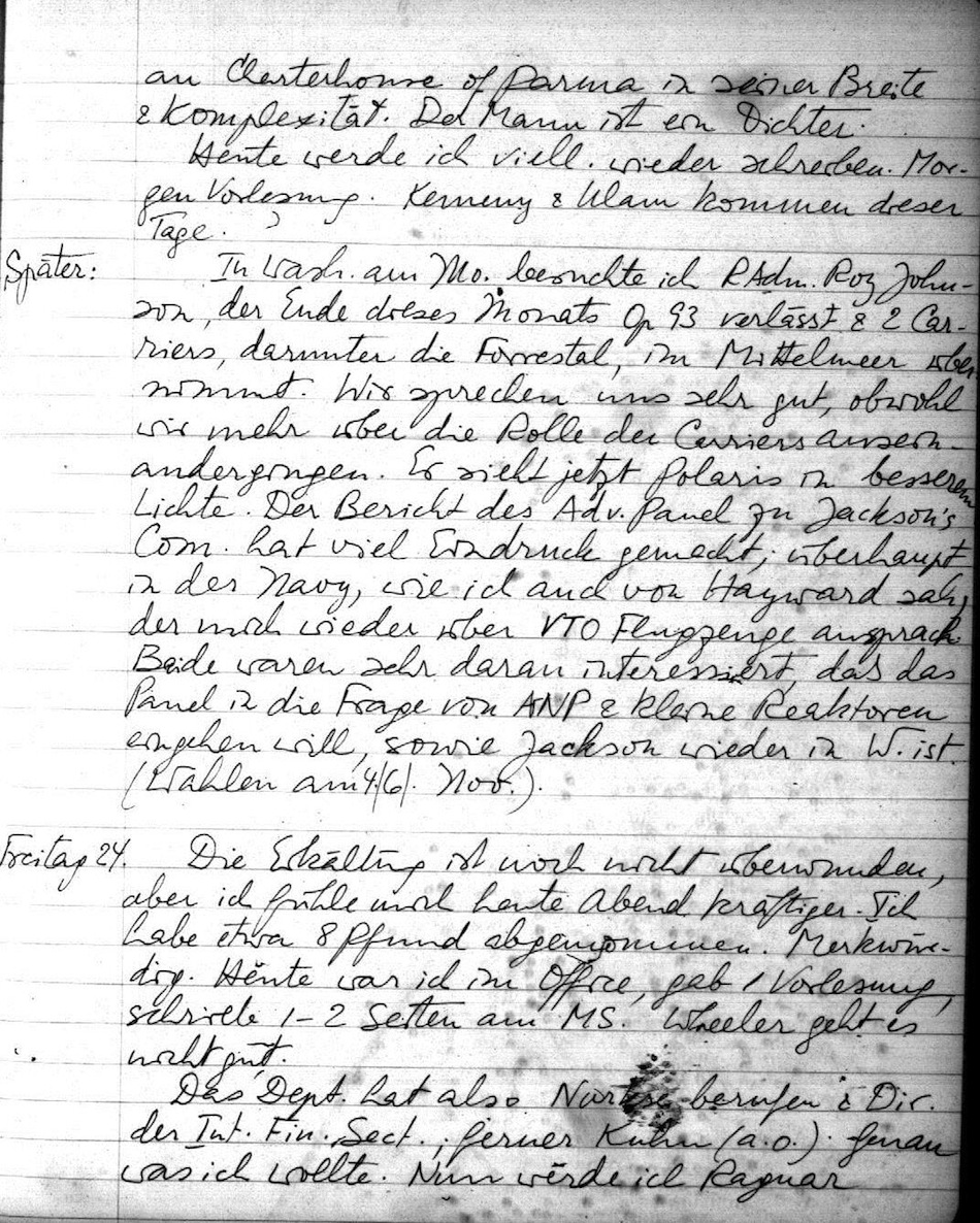 Die Erkältung ist noch nicht überwunden, aber ich fühle mich heute Abend kräftiger. Ich habe etwa 8 Pfund abgenommen. Merkwürdig. Heute war ich im Office, gab 1 Vorlesung, schrieb 1-2 Seiten am MS. Wheeler geht es nicht gut.